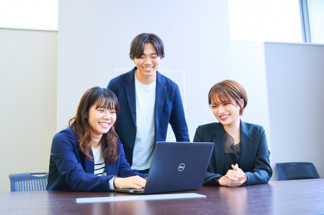 メンバーは、男女比率がほぼ同じくらいの割合で在籍し、ミドル層から若手まで満遍なく活躍していて、コミュニケーションが活発に行われるフラットな組織です。